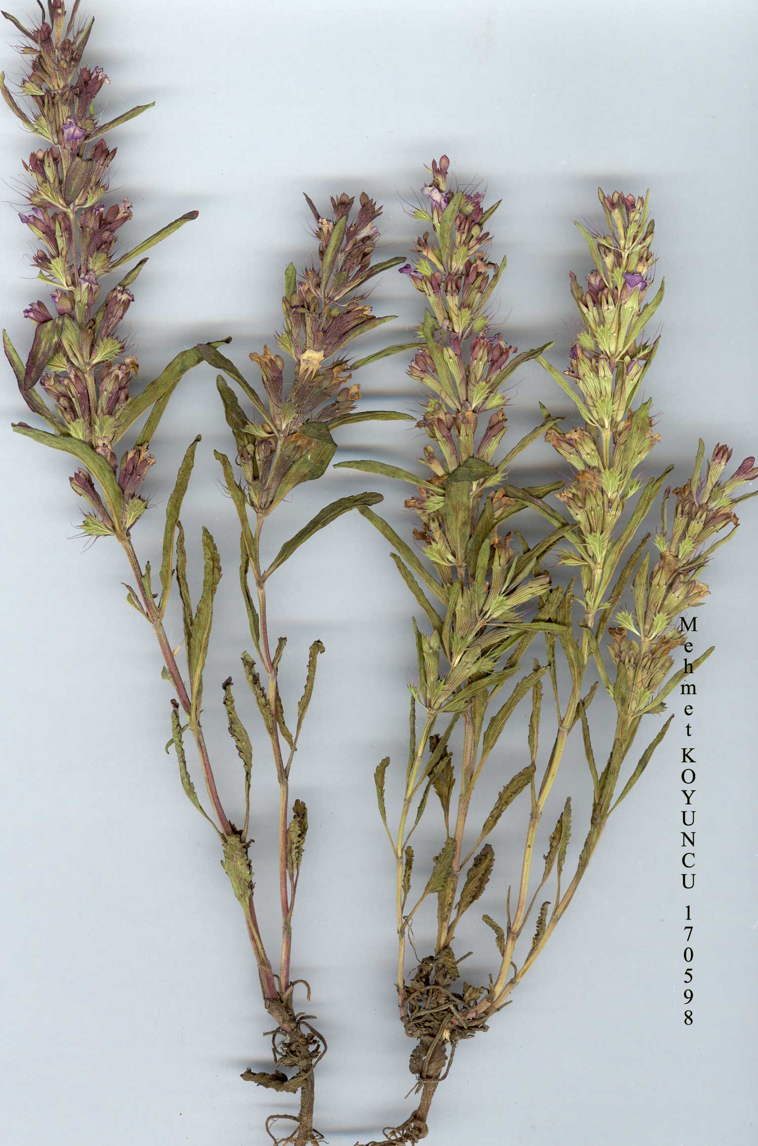 | L. iberica (Bieb.) Fisch. & Mey. in Ind. Sem. Horti Petrop. 6:53 (1839). Syn: Dracocephalum ibericum Bieb., Fl. Taur.-Cauc. 2:64 (1808);D. aristatus Bertol. in Nov. Comm. Acad. Bonon. 6:225 (1844)! Lallemantia sulphurea C. Koch in Linnaea 21:629 (1848). Ic: Bull. Appl. Bot. Leningrad 23:224(1930); Fl. RPR 8: t. 11 f. 4(1961). Similar to L. peltata but lowest leaves ovate, lamina to 18 x 10 mm, crenate; bracteoles 6-10 x 2-4 mm, ovate, cuneate at base, teeth usually with very long capillate awns; corolla violet-blue (sometimes with white lower lip), pale blue or white, 11-15(-18) mm. Fl. 4-6. Roadsides, slopes, fallow fields, weed of cultivated land, 500-2150 m. Type: [USSR, Georgia] in Iberia, Steven. Widespread in Anatolia, except for coastal areas. A4 Ankara: Keçiören, D. 18732! A5 Yozgat: 21 km from Çekerek to Alaca, 800 m, Coode & Jones 1607! A6 Tokat: Artova, 1400 m, Bornm. 1890:2147! A8 Gümüşane: Godenando in Chromdere (Krum De.), Sint. 1894:5891! A9 Kars: Selim to Sarikamiş, 1900 m, D. 30691! B2 Uşak: Elma Da. N. of Uşak, Bal. 1857: 1172! B3 Eskişehir: 30 km from Polatlı to Sivrihisar, 800 m, Coode & Jones 2272! B4 Ankara: Kavaklidere, 900 m, Bornm. 1929:14545! B5 Kayseri: 43 km from Şarkişla to Kayseri, 1350 m, Hub.-Mor. 11885! B6 Sivas: nr Zara, 1300-1400 m, Bornm. 1893:3489! B7 Tunceli: 1 km from Pülümür to Mutu, 1450 m, Hub.-Mor. 10775! B8 Bingöl/Muş: Elaziğ to Muş, 4 vii1963, M. Zohary! B9 Van: 6 km from Erciş to Bendimahi, 1750 m, D. 44140! C2 Antalya: Elmali, Bourgeau 1860:211! C3 Burdur: Buldur (Burdur), Heldr. C4 Konya: 34 km from Karaman to Ermenek, 1300 m, Hub.-Mor. 8566! C5 Içel: Gülek Boğazi, 1855, Bal. C6 Urfa: Birecik, Sint. 1888:451! C7 Urfa: 55 km E. of Birecik, 600 m, Hub.-Mor. 14176! C8 Mardin: Senar, Sint. 1888:955! C9 Mardin: 9 km from Cizre to Idil, 560 m, D. 42948! C10 Hakkari: Yüksekova, 25 v 1966, Eiselt! Palestine, Syrian Desert, N. Iraq, N.W., W. & C. Iran, Khorassan. Ir.-Tur. element. |