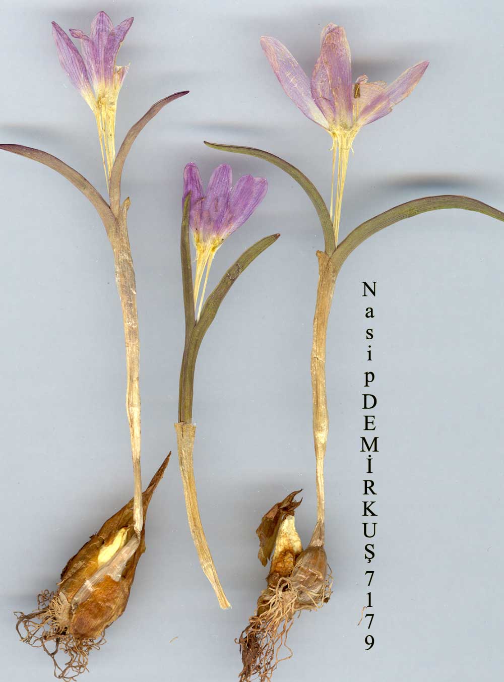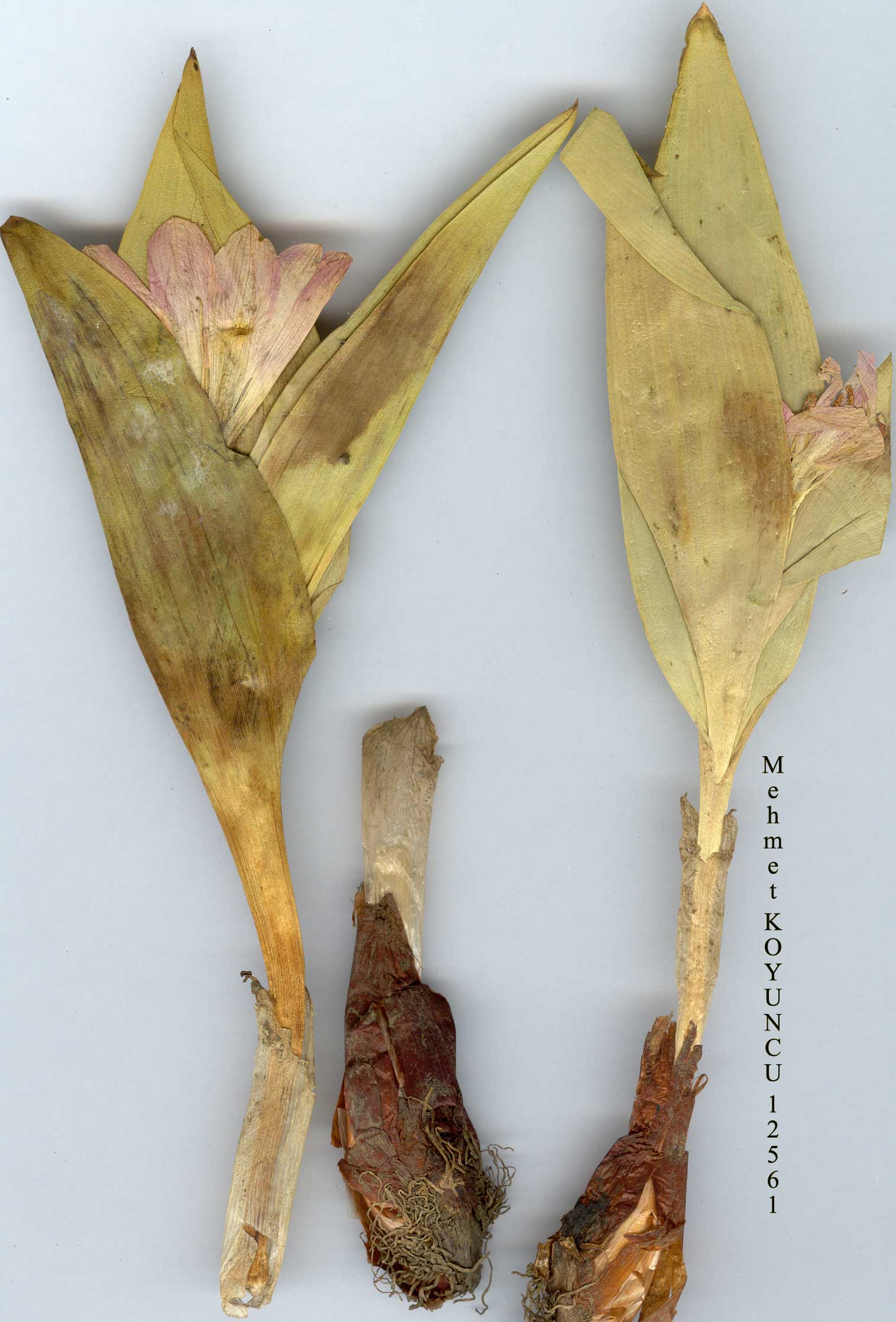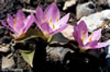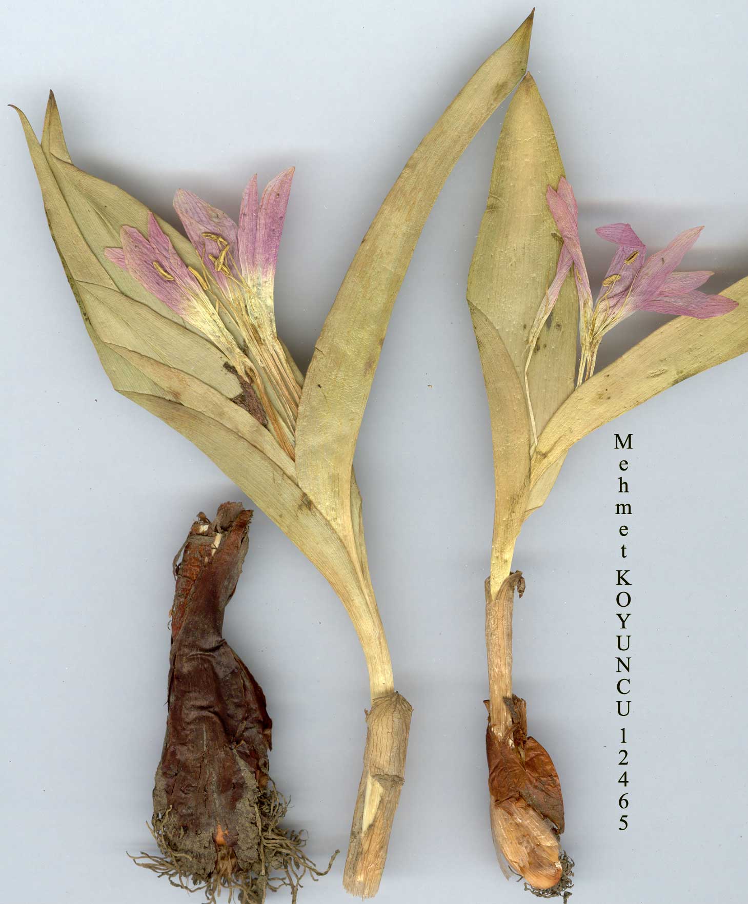 M. kurdica Bomm. in BulL Herb. Boiss. 7:79 (1899). Syn: Colchicum kurdicum (Bomm.) Stef., Monogr. Colchicum 42 (1926)! Corm oblong-ovoid, 2-4 x 1.5-2 cm; outer tunics mid-brown, membranous with a short neck 1-3 cm; innermost tunic pale brown. Leaves 3, lanceolate to narrowly lanceolate, 4-10(-12) x 1.8-3 cm at anthesis, to 17 x 3 cm at maturity, acute, greyish-green, glabrous. Flowers l(-2), pale to deep purple. Limb of perianth segments oblanceolate to narrowly oblanceolate, 30-35 x (5-)10 mm, acute, base auriculate. Filaments to 8(-9) mm; anthers yellow, 3-4 x 1 mm. Capsule ellipsoid, 20-30 mm. Fl. 5-7, Alpine steppe by melting snow, 1800-3000 m. Type: [Iraq] Riwandous, in alpe Helgurd, prope nives deliquescentes, 3100 m, 26 vi 1893, Bornmüller 1840 (holo. JE? iso. K!). SJE. Anatolia. B9 Van: û. Şatak, Kavuşşahap Da., 3000 m, D. 23137İ C9 Hakkari: Hakkari to Uludere, Süvari Halil pass, 2100 m, Güner 1671! CIO Hakkari: Sat Da. above Yüksekova, 2700 m, Duncan & Tait 22 (fr.!) Şemdinli, Kepenek köyü, 1800 m, T. Baytop (İSTE 26061)! N. Iraq. İr .-T ur. element. |