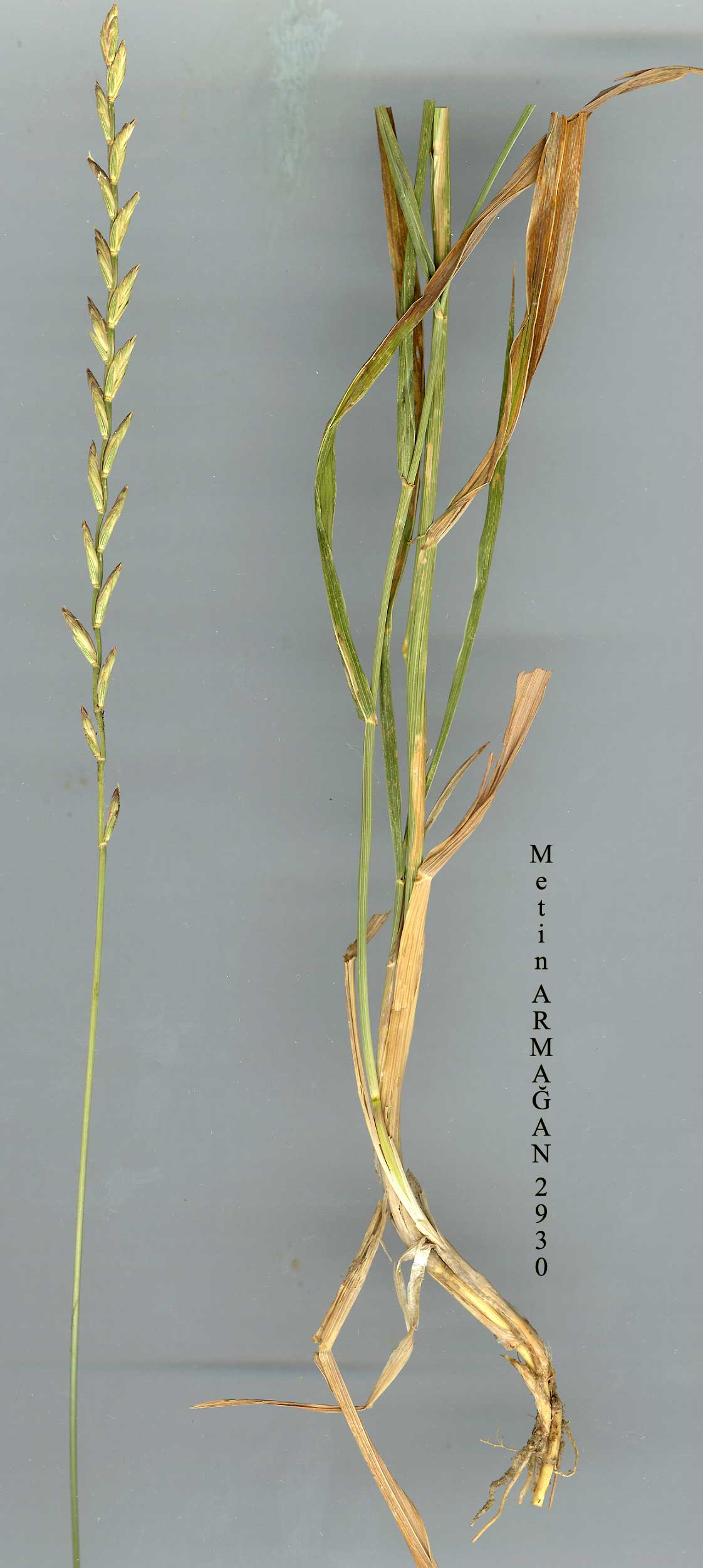 E. hispidus (Opiz) Melderis in Bot. J. Linn. Soc. 76:380(1978). Perennial with often long-creeping rhizomes. Stems 40-80 cm, usually glabrous, sometimes densely and minutely pubescent on nodes. Leaves 2-6 mm broad, usually flat, glaucous-green, closely and rather prominently veined, with conspicuous marginal veins, scabrid, often also sparsely long-pilose on upper surface, usually glabrous beneath; sheaths usually long-ciliate. Spike 10-20 cm, erect, rather dense to lax; rachis spinulose-ciliate on main angles. Spikelets with 4-6 florets, compressed laterally. Glumes 5-8.5 mm, subequal, oblong or lanceolate-oblong, usually 5-veined, scabrid on keel towards apex, usually obtuse or obliquely truncate to truncate, with small triangular point or mucro at apex, sometimes subacute. Lemma 8-11 mm, keeled at apex, usually obtuse or mucronate. Palea ciliate on keels. 1. Spikelets glabrous subsp. hispidus 1. Spikelets pubescent 2. Glumes usually glabrous; lemmas ciliate along margins subsp. podpyerae 2. Glumes and lemmas ± densely pilose 3. Lemmas obtuse or mucronate subsp. barbulatus 3. Lemma With awn to 8 mm; glumes usually subacute subsp. pulcherrimus subsp. hispidus. Syn: Triticum glaucum Desf., Cat. Hort. Paris ed. 1:16 (1804) nom. nud.; T. intermedium Host, Gram. Austr. 3:23, t. 22 (1805)! sub T. jun-ceum, non Elymus intermedius Bieb. (1808); Agropyron intermedium (Host) P. Beauv., Ess. Agrost. 102 & 146 (1812)! T. glaucum Desf. ex DC. in Lam. & DC, Fl. Fr. ed. 3, 5:28 (1815) non Honckeny (1782); A. glaucum (Desf. ex DC.) Roemer& Schultes, Syst. Veg. 2:752 (1817) non Elymus glaucus Buckl. (1863); A. hispidum Opiz in Bercht. & Seidl, Ökon.-Techn. Fl. Böhm. 1:413 (1836)! A. validum Opiz, loc. cit. (1836)! A. laevifolium Opiz, op. cit. 414 (1836)! Triticum truncatum Walk, in Linnaea 14:544 (1840); T. latronum Godron in Mem. Soc. Emuls. Doub. ser. 2,5:19(1854)! A. latronum (Godron) Cand. in Arch. Biol. Veg. Athenes 1:55 (1901)! Elytrigia intermedia (Host) Nevski in Acta Inst. Bot. Acad. Sci. URSS ser. 1, 1:14 (1933)! Map 40. Fl. 6-7. Scree below cliffs, shaley limestone slopes, arid places, field margins, 1400-2300 m. Type: [Czechoslovakia] um Prag, Opiz [413] (holo. PR!). N.W. Turkey, N., Inner & S. Anatolia. A1(E) Çanakkale: Gelibolu, Sirjaev. A2(E) Istanbul: Yedikule, 17 vi 1900, Azn.! A2(A) Istanbul: Maltepe, Azn.! A4 Ankara: 3 km S. of Kizilcahamam, Cornelius 921! B2 Kütahya: nr Caraja (Karaca), Warburg & Endlich 676. B6 Maraş: d. Göksun, Binboğa Da., above Yalak, 2200-2300 m, D. 20141! B7 Erzincan: Erzincan to Aşkale, 2.2 km N.E. of Çınar, at road to Aşkale, 1570 m, Bothmer & Buttler 1620! B8 Erz-um: 20 km from Varto to Hinis, 1900 m, D. 46248! B9 Bitlis: Nemrut Da., 2300 m, D. 23515! Cl Izmir: N. of Kuşadası, 5-30 m, Sorger 67-43-4! C4 Içel: Taurus (Toros Da.), Kotschy 1836:536a! C5 Içel: Gülek Tepe, 1895/6, Siehe! C. Europe, Mediterranean area, C. & S. Russia, Caucasia, Iran, N. Iraq; C. Asia, W. Pakistan. |
