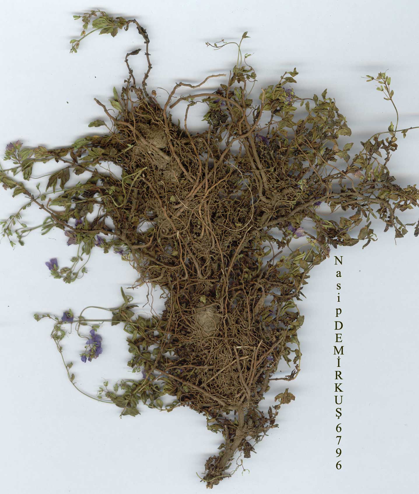 V. gentianoides Vahl, Symb. 1:1 (1790). Syn: V. pallida Hornem., Hort. Hafn. 17(1813); V. olympica Pallas ex Link in Jahrb. Gewächsk. 1(3):40 (1820); V. gentianoides Vahl var. glacialis Náb. in Publ. Fak. Sci. Univ. Masaryk Brno 70: 34 (1926). Ic: Fl. URSS 22: t. 14 f. 1 (1955). Shortly creeping perennial herb, sometimes forming mats. Rhizome branched, 4-7 mm diam., with leaf rosettes. Flowering stems unbranched, ascending to erect, 5-60 cm, usually glabrous, sparsely pubescent towards inflorescence. Leaves broadly elliptic to lanceolate, oblanceolate or linear, 15-80(-150)x (l-)3-15(-20) mm, ± thick or subcoriaceous, shining, midrib often whitish; apex acute or obtuse; margin narrowly cartilaginous, entire or remotely and irregularly denticulate to crenulate (rarely distinctly serrate); basal often crowded forming ± distinct rosette, ± petiolate, connate and vaginate at base (sheaths 5-15 mm), usually glabrous; cauline smaller, sessile, 1-5-paired, with short sheaths, often ± pubescent with usually very short glandular hairs. Raceme 10-50-flowered, indistinctly delimited from vegetative portion, often with sterile bracts at base, densely glandular-(rarely eglandular-) pubescent with short patent hairs. Pedicels 5-15 mm, 1-3 x bracts. Calyx 2-3.5 mm in flower, lobes 4(-5). Corolla dark to pale blue, 8-16 mm diam. Style (3-)4-8 mm. Capsule orbicular, 4-7 x 5-7 mm, usually exceeding calyx, usually glandular-pubescent, emargi-nate (sinus 0.10-0.14 x capsule length). Seeds numerous, orbicular to elliptic, 1.8-2.4 x 1.5-2 mm, flat, smooth. Fl. 5-8. Forests, damp meadows, pastures, wet places, rocky alpine slopes, 1000-3600 m. Type: [Turkey] in Cappadocia, 'Veronica orientalis erecta gentianellae foliis', Tournefort (holo. C, photo! iso. P-Tourn. 717, photo!). N. & Inner Anatolia. A2(A) Bursa: Ulu Da., 1600m, Bornm. 1899:5373! A3 Bolu: Ala Da. on Kartal Kaya Tepe, 2100-2200 m, D. 37411! A4 Çankiri: d. Ilgaz, Ilgaz Da., southern part, 1680 m, Hııb.-Mor. 14031! A5 Amasya: Ak Da., 1700 m, A.Baytop (ISTE 29438)! A6 Ordu: Erdaş above Çambaşi, 2000 m, Tobey 1406! A7 Trabzon: Trabzon to Maçka, Malaka Da., Anşın (ISTO 16465! A8 Gümüşane: d. Gümüşane, Kop Da., 2400 m, Furse & Synge 860!A9 Çoruh: Şavşat, Çenkelek Y., 2400 m, Yüksel (ISTE 35329)! B2 Kütahya: Simav, Kiçir to Ak Da., 1700 m, Coode & Jones 2672! B3 Eskişehir: Sündiken Da., Ekim 818! B4 Ankara: Elma Da. nr Ankara, 1700 m, Kotte! B5 Kayseri: Erciyas Da., 3200 m, Bal. 1856:1028! B7 Tunceli: Munzur Da. above Ovacik, 1650 m, D. 31422! B8 Erzurum: mts. between Erzurum and Çat, 3000 m, Rix 1056! B9 Van: Artos Da., 3000 m, D. 22860! B10 Kars: N.E. slope of Ağri Da. nr Serdar Bulak, 2500 m, D. 43753! C4 Konya: Bozkir, Tuzan De., Çetik 136! C9 Hakkari: Kara Da., 3500 m, D. 24458 (var.glacialis)! C10 Hakkari: Sat Da., N.W. of Sat G, 2850 m, D. 45509 (var. glacialis)! Caucasia, N.W. [ran. Hyrcano-Euxine (mt.) element. Extremely variable, especially in size and leaf shape. The typical forms from lower altitudes are continuously linked with dwarf alpine forms (5-10 cm tall) with small oblanceo-late leaves (15-25x 3-5 mm) and 3-4 mm style, which occur between 2500 and 3500 m. The latter have been described as var. glacialis Náb. V. sumilensis Freyn & Sint. (in Bull. Herb. Boiss. 4:55, 1896) is very similar to var. glacialis, but differs by leaves lacking a cartilaginous margin; more eglandu-lar curved hairs and fewer glandular hairs in inflorescence; style 2.5-3 mm; capsules 2.5-3.5 x 3.4 mm; seeds 1 x 0.8 mm. It is known only from the syntypes, [Turkey A7 Trabzon] Sumila (Meryemana), Sint. 1889:1731 and [A7 Gümüşane] Karagöl Da., Alask to Savesi, Sint. 1894:7237! and its taxonomic status remains uncertain. |