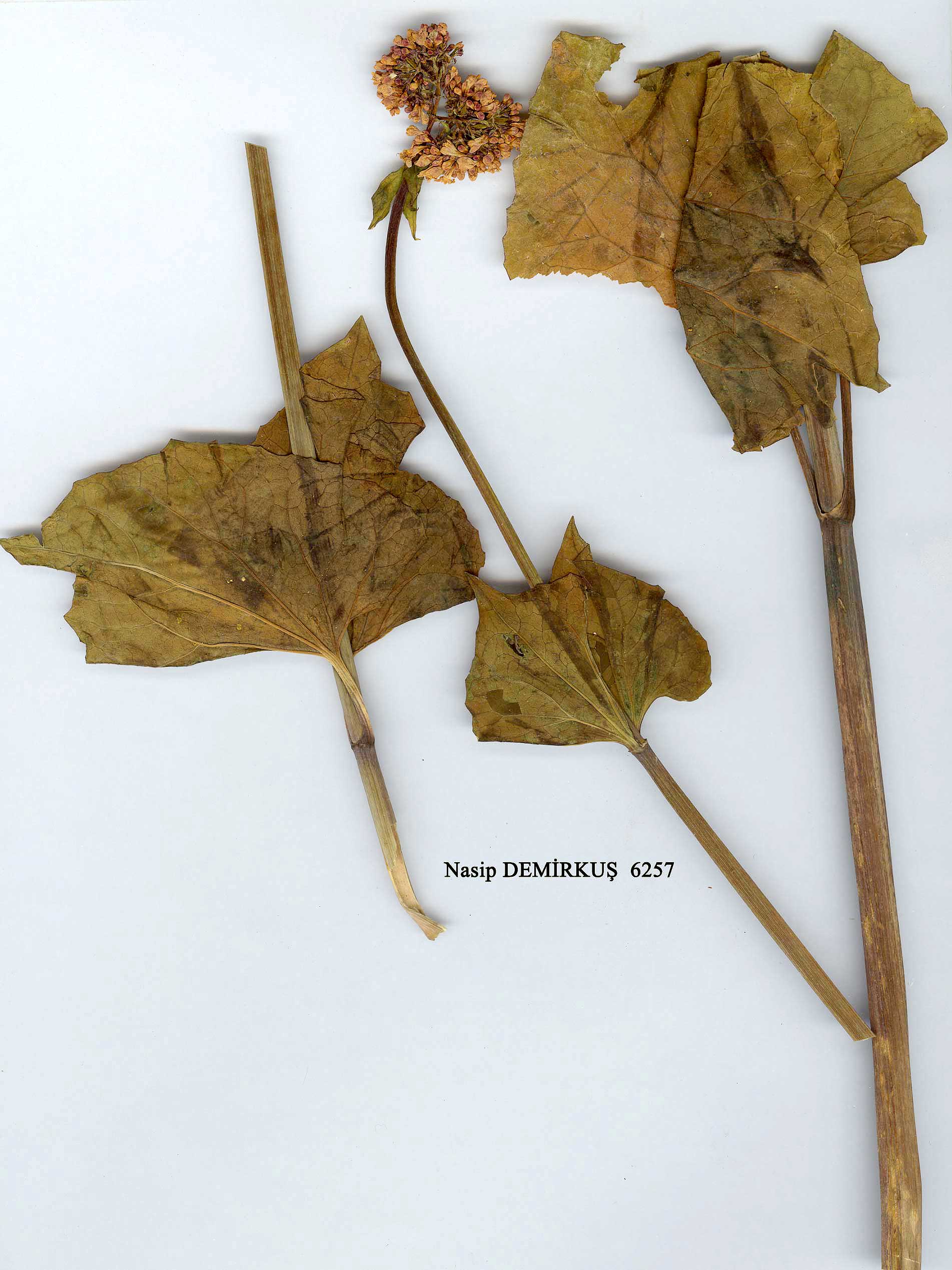Large glabrous, spreading perennial, up to 1?5 m tall. Rhizome cylindrical, branched. Stem hollow, subsulcate. Leaves all simple, cordate, acute, unequally dentate or sometimes repand, 4-20 cm long; petioles 5-50 cm long. Upper cauline leaves triangular to ovate, sometimes lanceolate, usually subsessile. Inflorescence dense, branching di- and/or trichotomously. Bracts ovate to lanceolate, usually pilose but sometimes glabrous. Flowers white, sometimes pale pink. Achene glabrous. Fl. 6-8. Shady places often by streams, 1000-3000 m. Widespread, but commonest in N. Anatolia. A2(A) Bursa: Bithynian Olympus (Ulu Da.), Boiss.! A3 Bolu: Ala Da. on Kartal Kaya Tepe, 1750 m, D. 37434! A4 Kastamonu: N. side of Ilgaz Da., 2200 m, D. 38370! A5 Amasya: Ak Da., nr. Amasya, 1000 m, Bornm. 1889:331. A6 Ordu: below Çambaşi, 1900 m, Tobey 1272! A7 Giresun: below Tamdere, D. 20689! A8 Çoruh: above Artvin, D. 29727! A9 Çoruh: Ardanuç to Kordevan Da., D. 30135! Bl Balikesir: Mt. Ida (Kaz Da.), Sint. 1883:464! B2 Kütahya: Murat Da. (above Gediz) at Hamam, 1400 m, D. 36671! B7 Erzincan: Keşiş Da. above Cimin, 2450 m, D. 31822! B8 Bingöl: Bingöl Da., 2800-3000 m, Tchihatcheff. B9 Bitlis/Van: mt. 10 km S.E. of Pelli, 2200 m, D. 22518! C2 Denizli: Honaz Da., nr. Denizli, 1000 m, Hub.-Mor.5294. C5 Niğde: Bulghar Maaden, 1400 m, Siehe 1896:507! C6 Adana: Amanus, Düldül Da., 1500-2000 m, Haradj. 2345! C9 Hakkari: Cilo Da. above Diz Deresi, 2400 m, D. 23936! C10 Hakkari: Sat Da., Davis obs. Caucasia, N. Iran, Euboea (Greece). The characters used to separate the Caucasian V. tiliifolia from V. aUiariifolia break down in Turkey; V. klukhorica appears to be no more than a depauperate variant. Both are therefore included in V. alliariifolia here. |