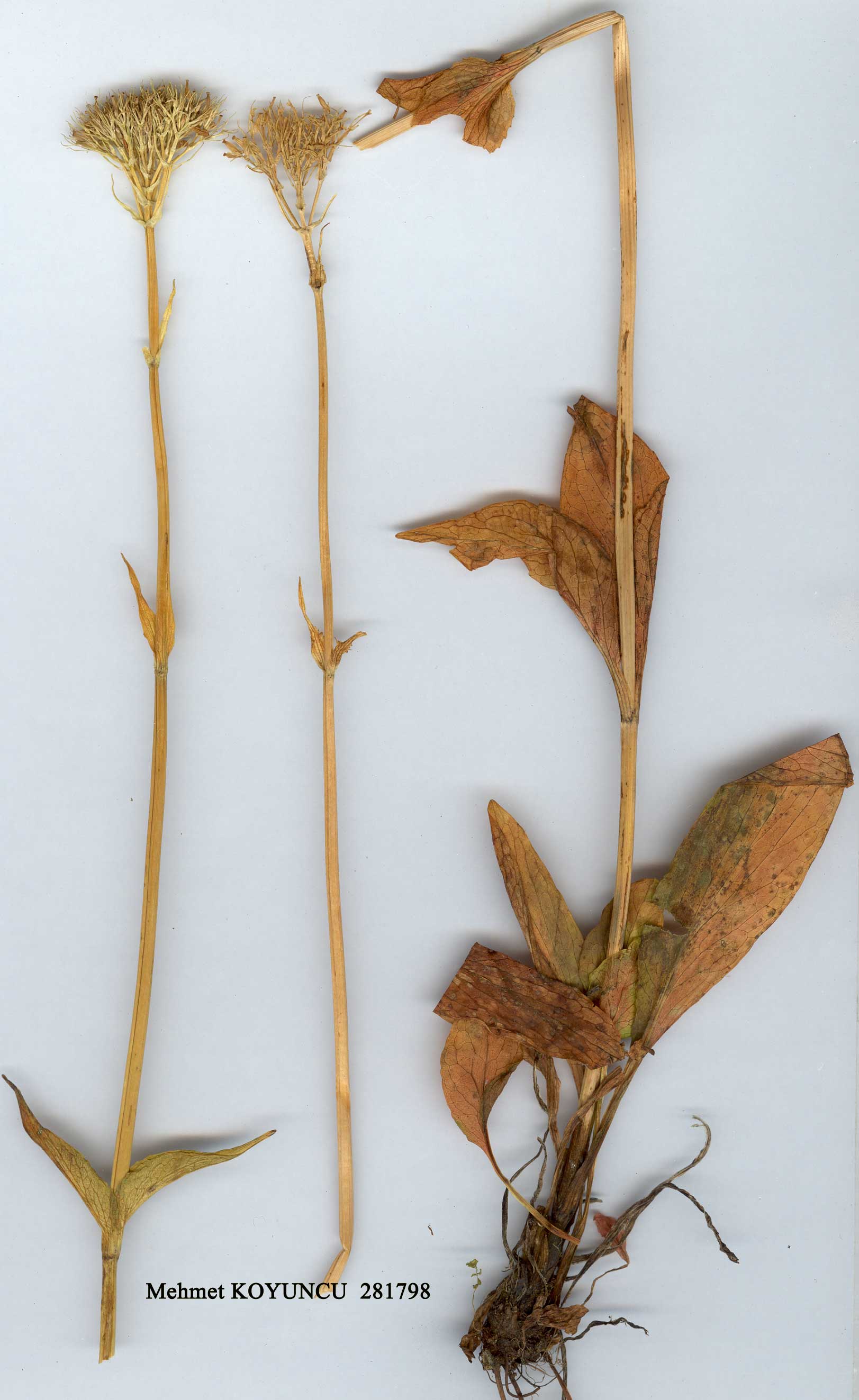 V. alpestris Stev. in Mem. Soc. Imp. Nat. Mosc. 5:342 (1814). Syn: V. alpina Adams in Weber & Mohr, Beitr. 1:45 (1805) non Vell. (1790); V. montana Bieb., Fl. Taur.-Cauc. 1:25 (1S08) non L. (1753). Map 78, p. 555. Erect, glabrous perennial. Rhizome cylindrical; roots slender, cylindrical. Stem solitary, simple, subsulcate, (25-)40-60 cm. Basal leaves simple, ovate to oblong, (3-)6-10 cm, entire; petioles usually slightly longer than lamina. Cauline leaves ovate, acute, becoming amplexicaul, sessile towards top of stem, frequently serrate, the uppermost often lanceolate-linear and occasionally pinnatisect with lanceolate lobes. Inflorescence dense in flower, convex, c. 2(-4) cm in diam., spreading somewhat in fruit. Flowers white. Achene glabrous. Fl. 5-8. Moist alpine meadows, 1500-3000 m. N.E. & E. Anatolia. A7 Gümüşane: Karagöl Da., Sint. 1894:7049! A8 Trabzon: N. slope of Soğanli Da. above Çaykara, 2000-2200 m, D. 32187! B7 Erzincan: Sipikör Da., 1500 m, Balls 1538! B8 Erzurum: Tech Da. (Palandöken Da.) 2000-2300 m, Tchihatcheff 908. B9 Van: d. Hoşap, Kepir Da., 2800 m, D. 23350! Caucasia. Euxine (mt.) element. The Turkish specimens reflect a rather polymorphic species, particularly variable characters being the degree of serration of the leaf margins and the degree of division of the cauline leaves (Sint. 7049 is particularly aberrant, with small basal leaves and absence of serration). |